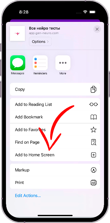 - выберите На экран «Домой» («Add to Home Screen») и следуйте инструкции