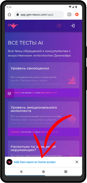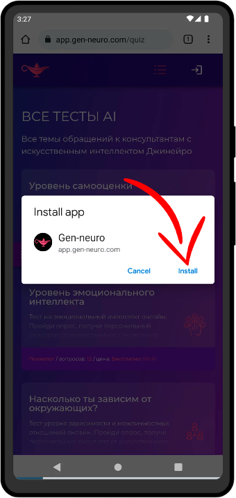 - Gen-aura предлагает установить/добавить приложение на ваше устройство, нажмите на это приглашение: